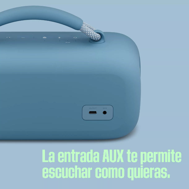 Ya sea que vayas a una fiesta de cumpleaños intensa o a un plan tranquilo al aire libre, este parlante tipo boombox va contigo. La vibra te sigue a donde estés.