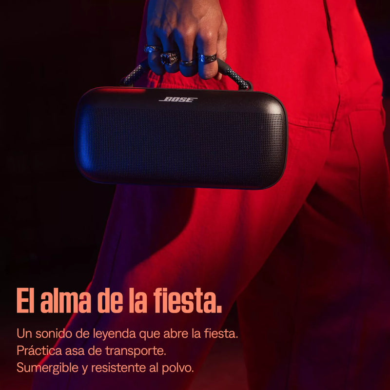 Ya sea que seas el DJ designado entre tus amigos o que seas un amante de la música con las mejores listas de reproducción que te entusiasma compartir, ya es el momento de lucirte. El altavoz Bose SoundLink Max combina la energía de un altavoz grande, la comodidad de un dispositivo que puedes llevar a donde sea y una batería de larga duración para que no paren nunca tus canciones favoritas, tanto de día como de noche. La fiesta empieza cuando llegues.