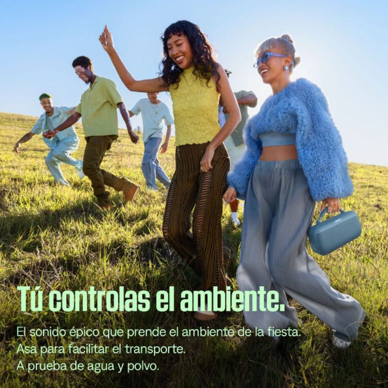 Su tamaño te permite llevar la fiesta a cualquier parte, y con el asa removible y la correa opcional, compartes la vibra sin esfuerzo. Solo llega, ponle play y deja que la música haga lo suyo. Los colores adicionales del asa y la correa se venden por separado.
