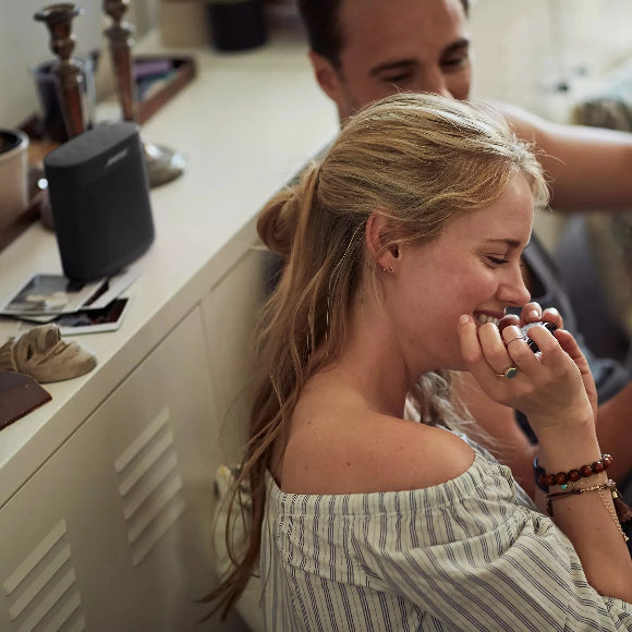 ¿Quieres escuchar la misma música en diferentes habitaciones al mismo tiempo? Puedes agrupar dos o más Parlantes Bose para el hogar, y ahora, con la tecnología Bose SimpleSync, también puedes sincronizar un Parlante Bose para el hogar con un parlante Bluetooth Bose SoundLink y reproducir ambos al mismo tiempo en perfecta sincronía.
