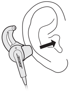 Cuando usas los audífonos de forma adecuada, te proporcionan la comodidad y claridad que esperas de Bose®. Las puntas de silicona StayHear® están diseñadas para apoyarse cómodamente en el borde del oído y también para ajustarse de manera natural al borde superior del oído.
