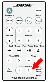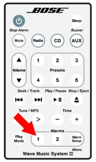 the system has two independent alarms. make sure both alarm times are not visible in the upper right-hand corner of the display. if they are, press alarm 1 and/or alarm 2 to turn off the alarm(s).
